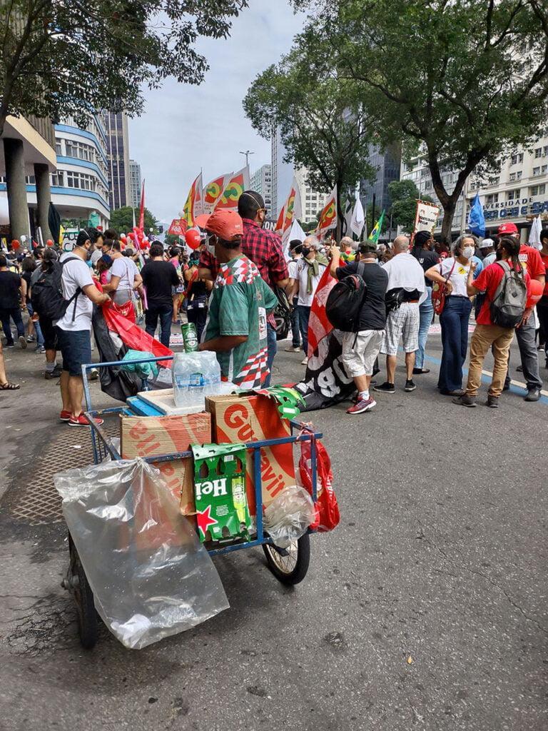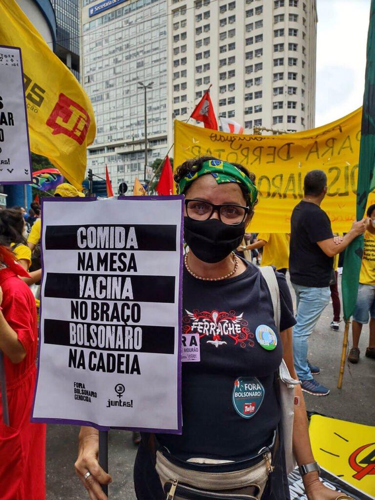 Com gritos de ‘Fora Bolsonaro ‘, os manifestantes cariocas se concentraram na Rua Uruguaiana, na altura da Avenida Presidente Vargas, no Centro do Rio. O protesto reuniu milhares de pessoas que marcharam pedindo a saída do presidente. Os manifestantes usaram faixas e cartazes com frases de ‘Fora governo de cloroquina’, ‘Fora governo da fome’, ‘Povo unido para derrotar Bolsonaro’.